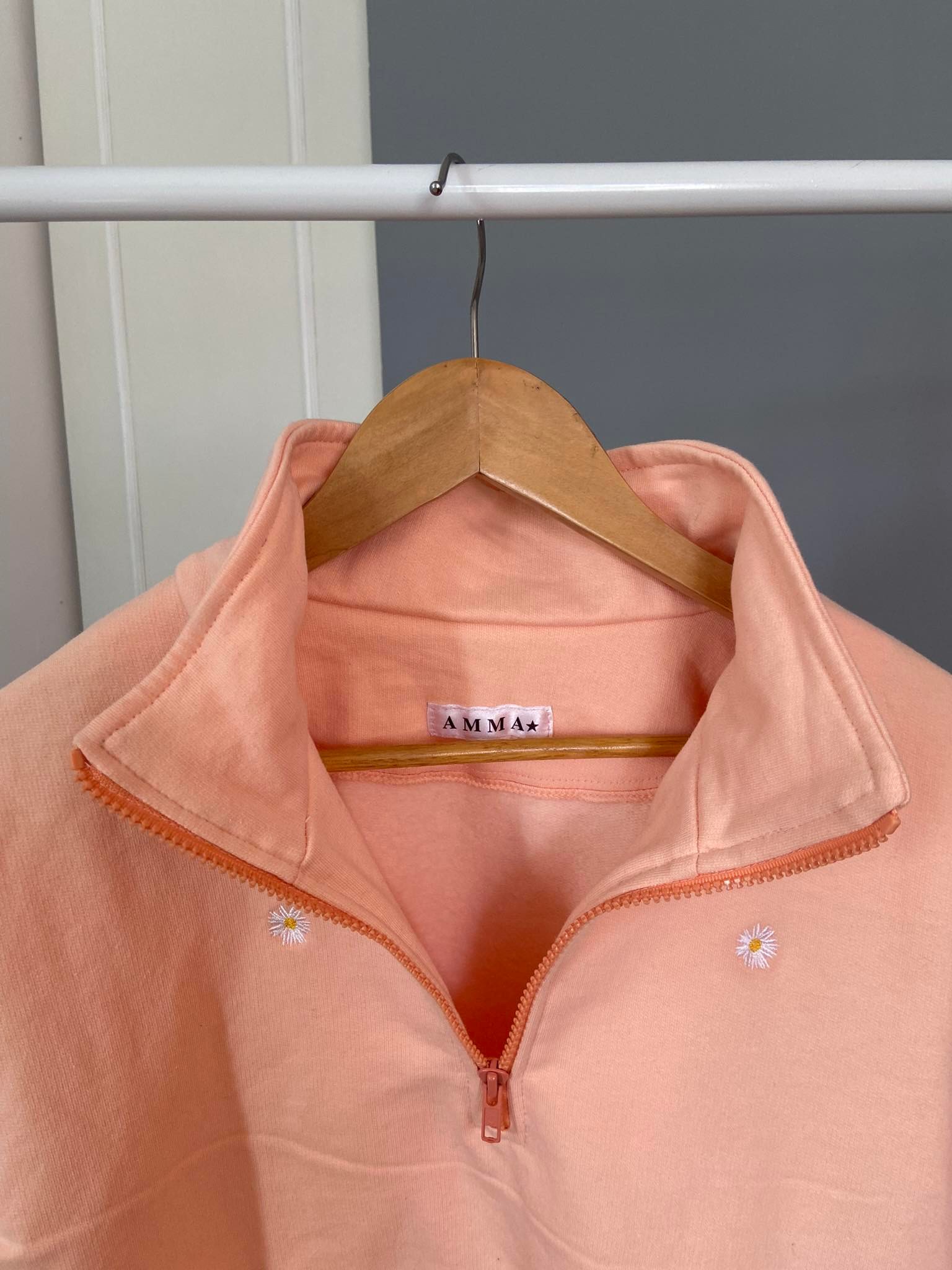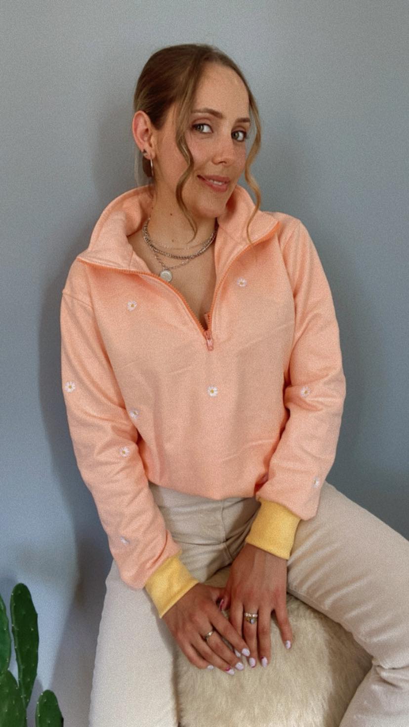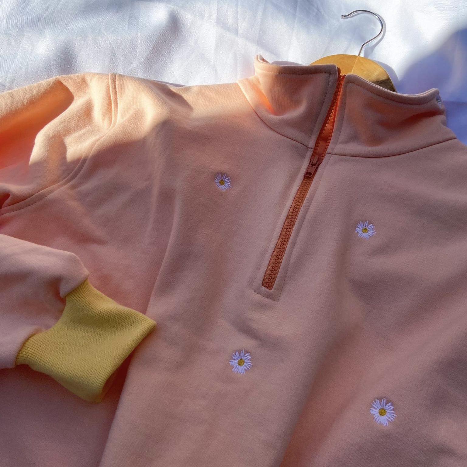 Bicolor damasco y amarillo pastel, con bordado de margaritas.